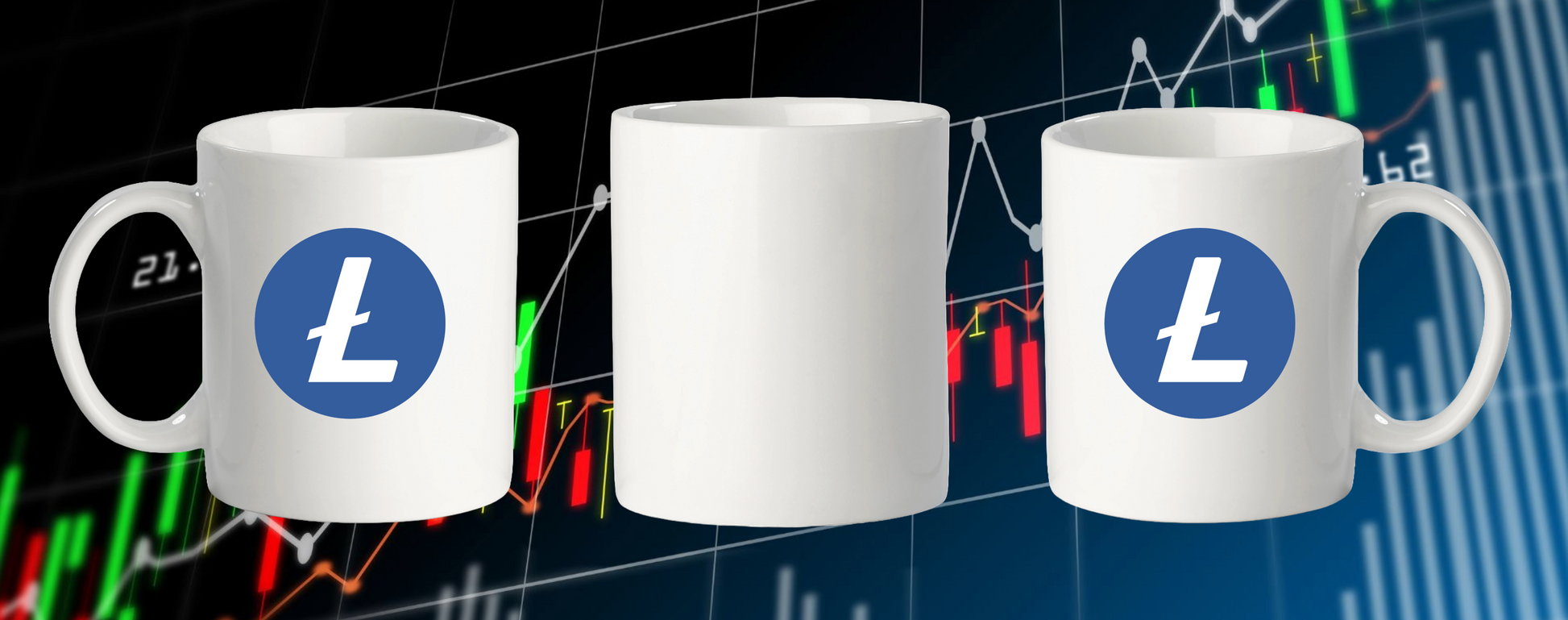 Kahvikuppi Litecoin fanilogolla. Välttämätön kurssien katseluun kahvipöydässä aamutuimaan.